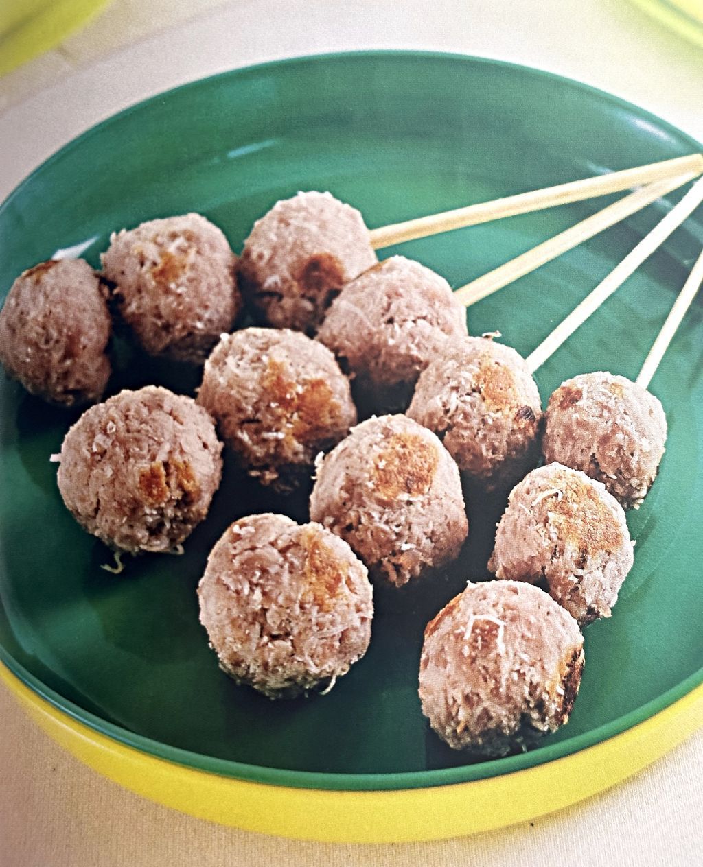 2. Bentuk adonan, rekatkan pada tusuk sate.