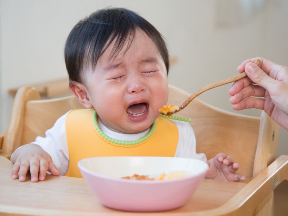Sinyal kenyang: anak mendorong makanan menjauh, menutup mulut, atau mengalihkan kepala.