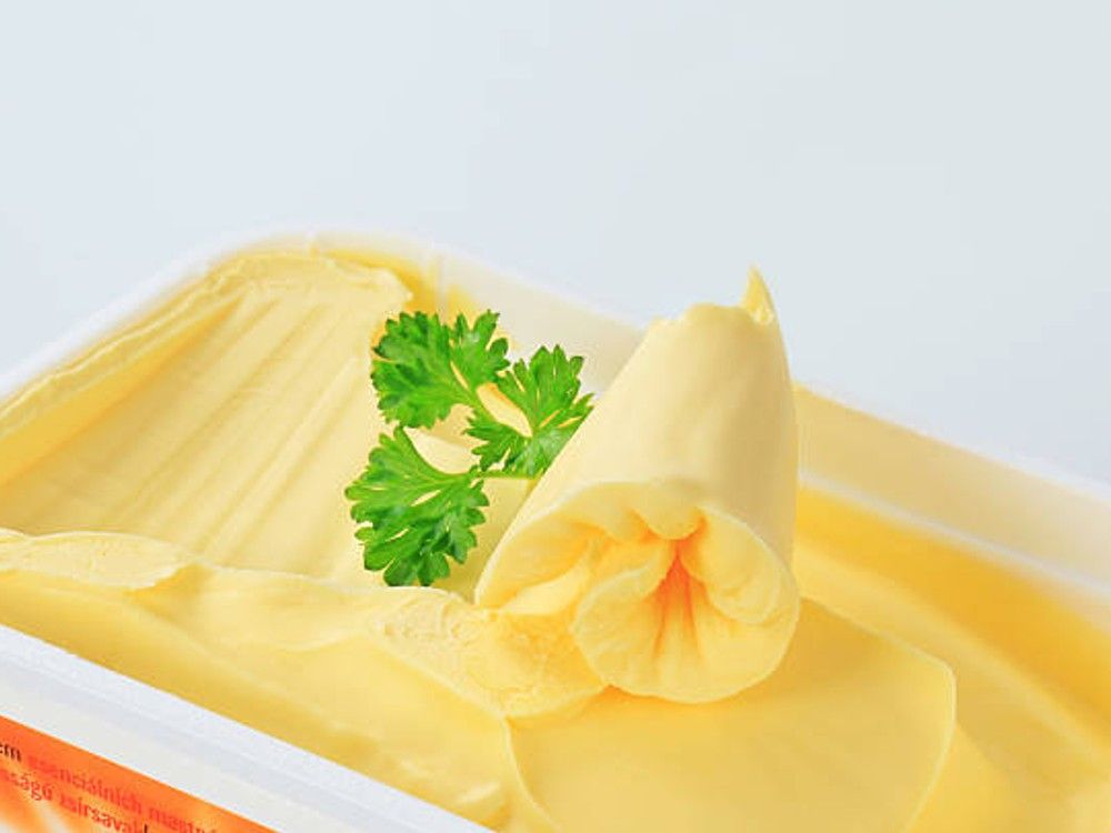 Sementara margarin merupakan pengganti mentega yang terbuat dari minyak nabati. Margarin mengandung lemak lebih sedikit daripada mentega.