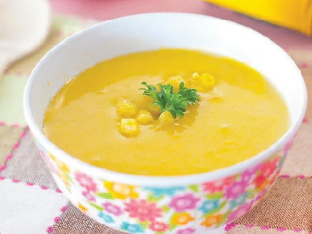 | Fun facts | Beras merupakan sumber karbohidrat yang menyediakan energi. Sementara jagung dan labu mengandung serat yang baik bagi pencernaan. |