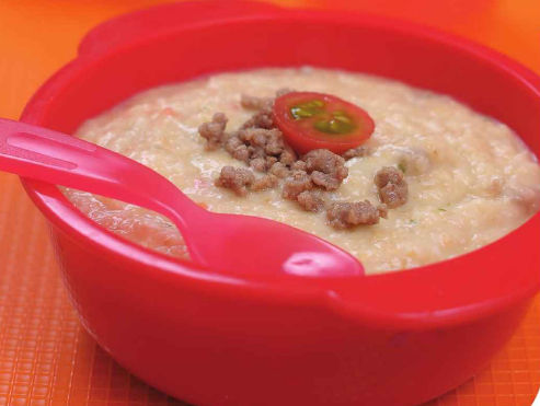 Tips: kaldu sapi bisa diganti dengan air atau larutan susu formula lanjutan sesuai usia.