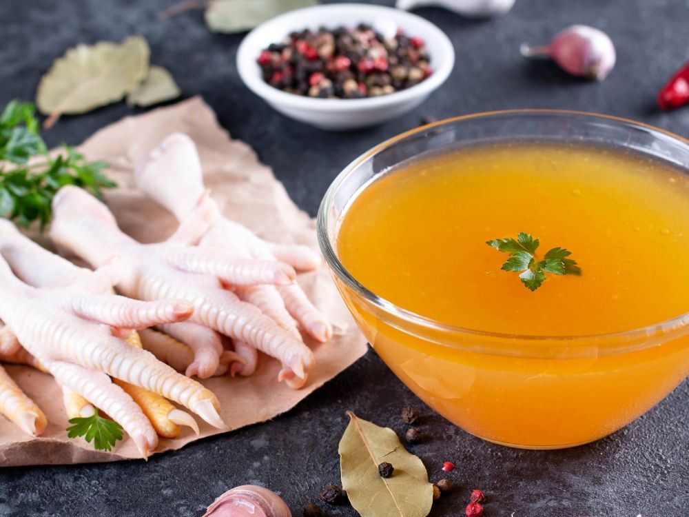 - Blender atau chopper semua bahan (termasuk kulit dan otot ceker) dengan tambahan kaldu rebusan secukupnya, sampai teksturnya halus dan agak cair.
