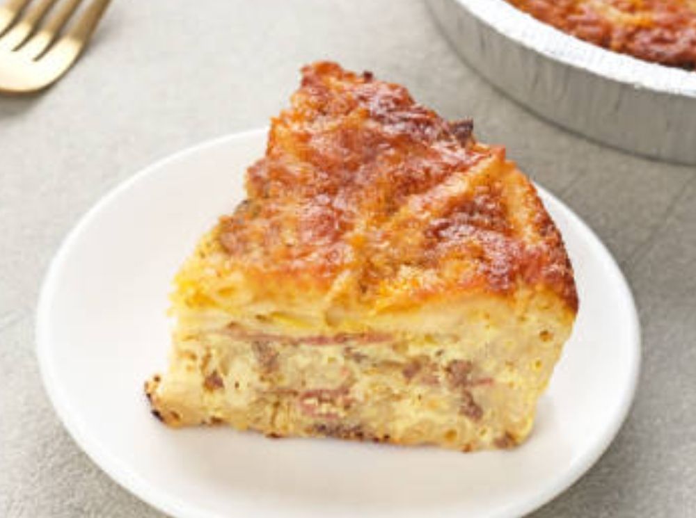 - Tata setengah bagian adonan kentang di wadah, masukkan semua bahan isian, lalu tutup dengan sisa adonan kentang.