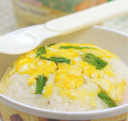 - Didihkan kaldu. Masukkan beras, telur, asparagus, dan bawang putih. Masak sambil diaduk-aduk hingga kaldu terserap oleh beras. Angkat.
