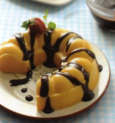- Saus: didihkan susu tawar cair bersama gula pasir. Tambahkan arutan maizena masak hingga agak mengental. Masukkan cokelat leleh aduk rata. Sajikan puding bersama saus cokelat.