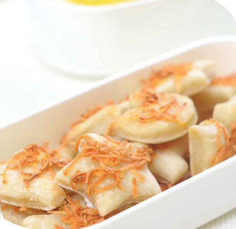 - Susun potongan adonan di atas loyang. Panggang di dalam oven bertemperatur 160 derajat celcius selama 25 menit atau hingga matang dan berwarna kuning kecoklatan.
