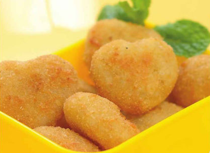 - Panaskan minyak. Goreng potongan nugget hingga matang dan berwarna kuning kecoklatan. Angkat dan hidangkan segera.