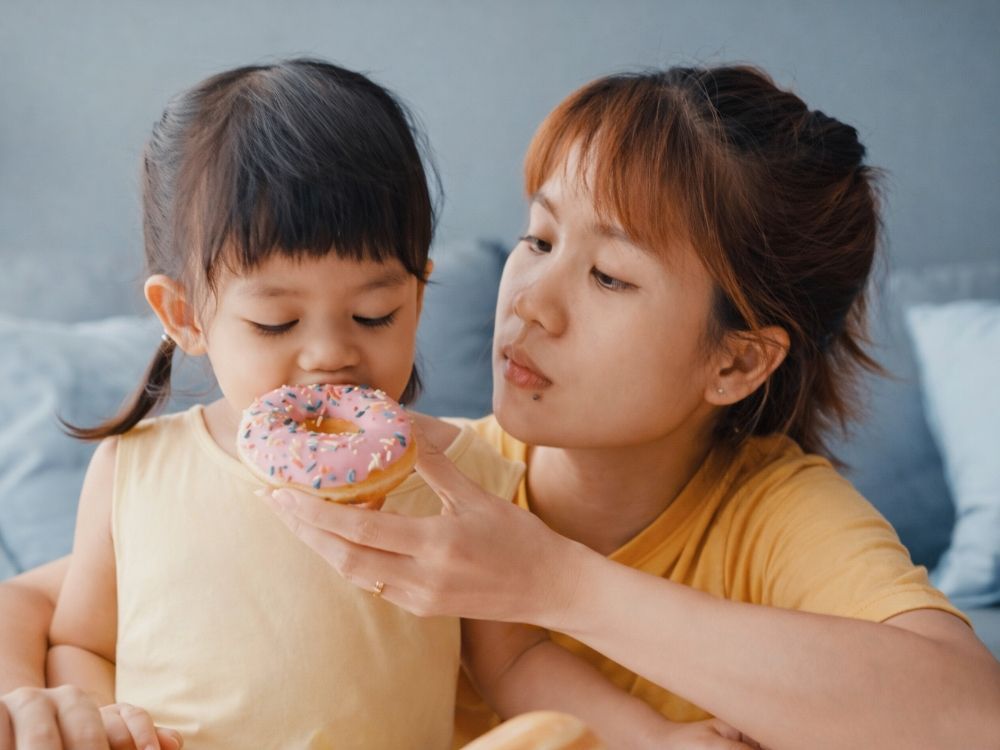Makanan tinggi gula bersifat “rewarding” sehingga anak sulit berhenti dan cenderung minta porsi lebih.
