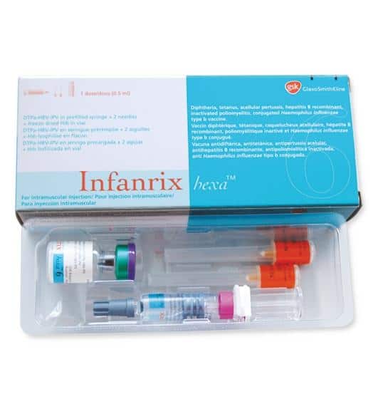 Vaksin combo untuk pencegahan penyakit Hepatitis B, Difteri, Pertusis, Tetanus, HiB, dan poliomyelitis untuk anak usia 6 minggu hingga 24 bulan
